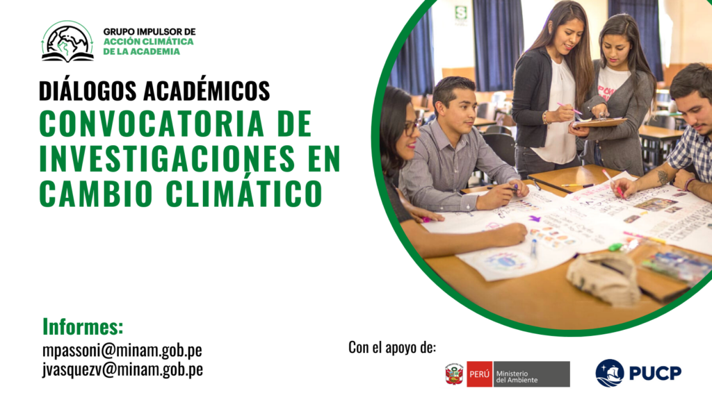 Esta iniciativa es impulsada por el Ministerio del Ambiente, el Grupo Impulsor de Acción Climática de la Academia con el apoyo de la Pontificia Universidad Católica del Perú a través del Instituto de la Naturaleza, Tierra y Energía (INTE-PUCP), la Universidad Peruana Cayetano Heredia, la Universidad de Lima y la Universidad Continental.