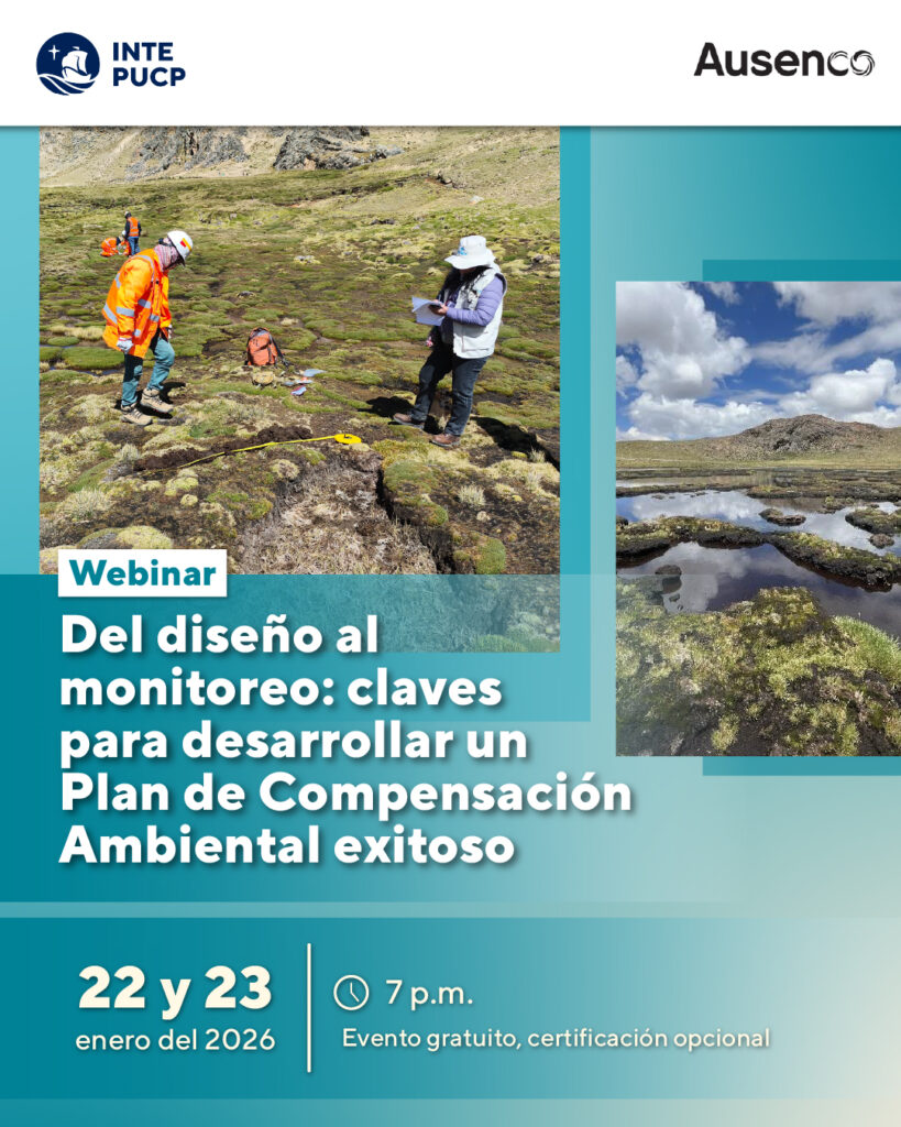 En este marco, el webinar Del diseño al monitoreo: claves para desarrollar un Plan de Compensación Ambiental exitoso, coorganizado por el Instituto de la Naturaleza, Tierra y Energía (INTE-PUCP) y Ausenco Perú, propone un espacio de reflexión y análisis técnico sobre los principales retos asociados a la planificación, ejecución y monitoreo de la compensación ambiental.