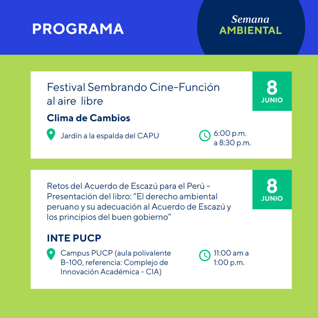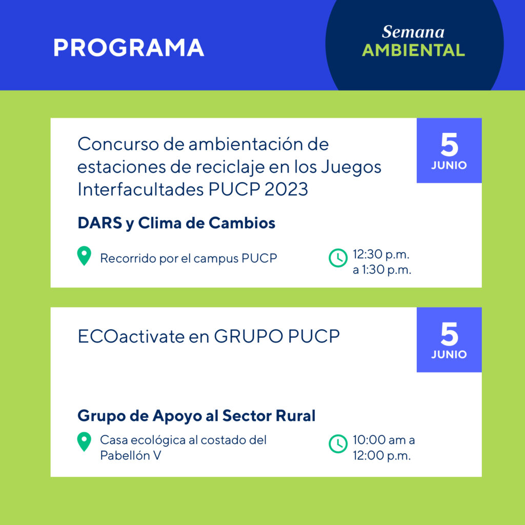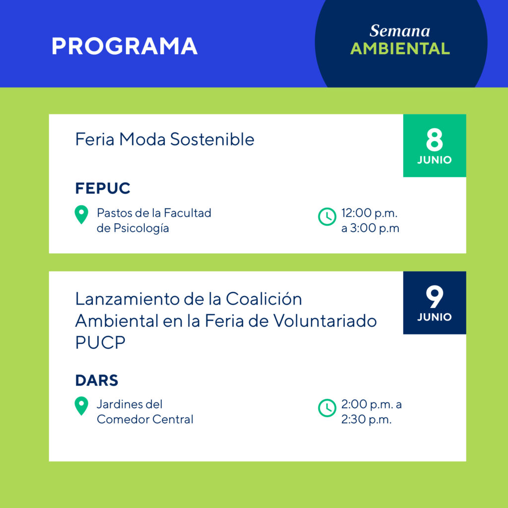 La Semana Ambiental PUCP une distintas actividades en el campus universitario para sumarse a la acción de abordar temas ambientales, liderado por la Dirección Académica de Responsabilidad Social (DARS), el Instituto de la Naturaleza, Tierra y Energía (INTE-PUCP) y Clima de Cambios.