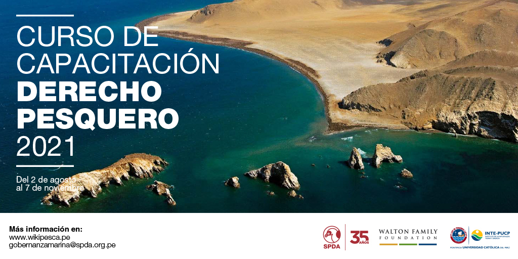 El Instituto de la Naturaleza, Tierra y Energía (INTE-PUCP) y la Sociedad Peruana de Derecho Ambiental (SPDA) organizan el curso de capacitación «Derecho Pesquero» que se desarrollará del 2 de agosto al 7 de noviembre 2021 y busca capacitar a profesionales de las carreras de derecho, ingeniería pesquera y biología marina en torno al marco jurídico aplicable a la gestión de recursos hidrobiológicos, así como desarrollar en los estudiantes una visión integral sobre la gobernanza marina.